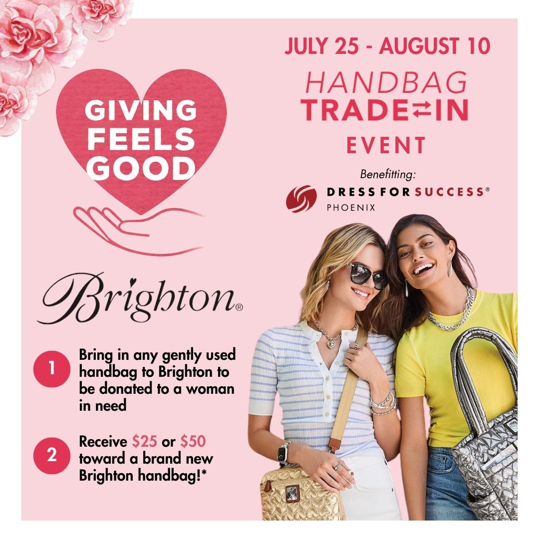 From July 25 through August 10, donate a gently-used handbag at Brighton in Kierland Commons to support Dress for Success Phoenix. Your donation will help provide women with the confidence they need to thrive in work and in life.